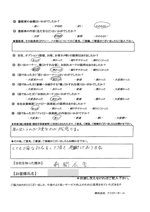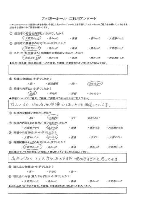 とても良心的で、父を見送る家族葬として親戚一同喜んでいます。