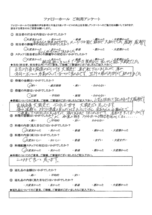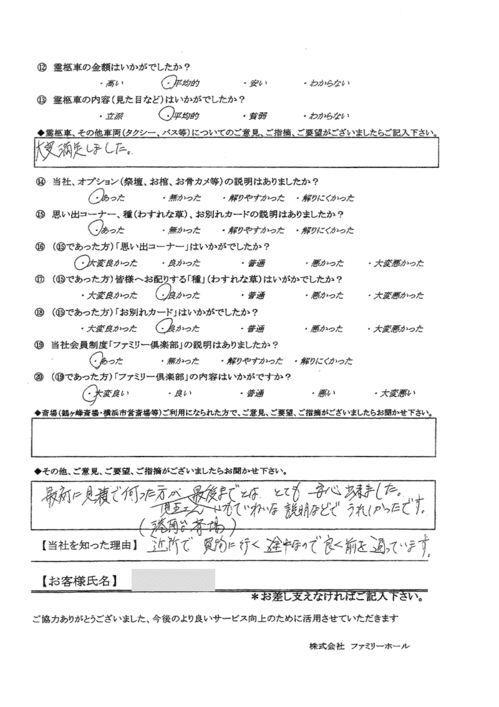 とても良心的で、父を見送る家族葬として親戚一同喜んでいます。