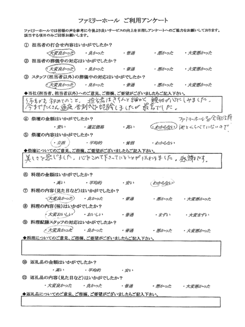 故人のイメージに合った祭壇でした。とても満足しています。
