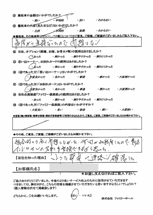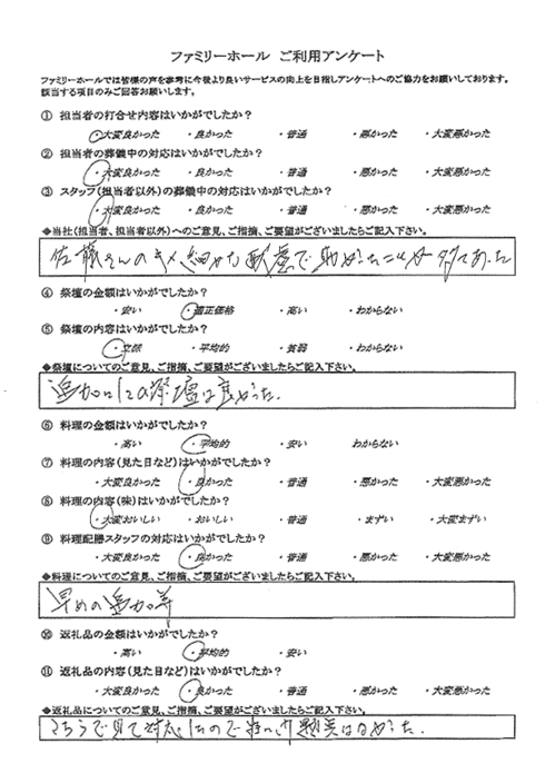 とても良心的で、父を見送る家族葬として親戚一同喜んでいます。