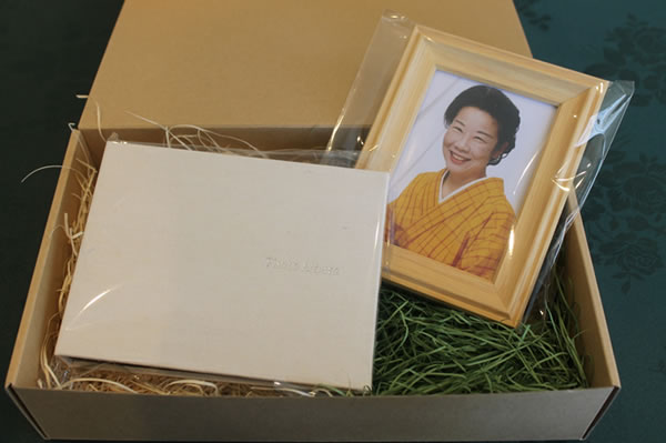十数枚の中から、安藤が選ばせていただきましたお写真を額へ納め、ギフトボックスにしお客様へお渡しいたしました。