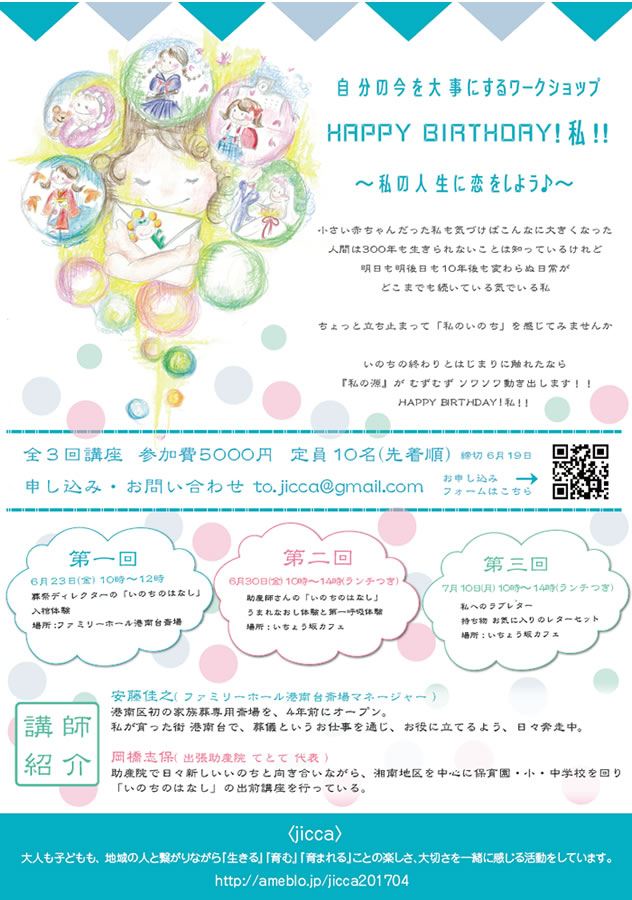 [全3回講座 6/23・6/30・7/10]自分の今を大事にするワークショップ HAPPY BIRTHDAY 私!~私の人生に恋をしよう♪~のお知らせ