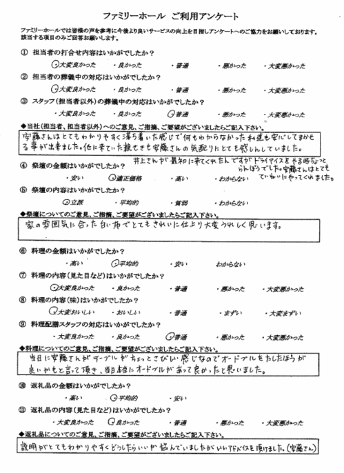 安藤さんはとてもわかりやすく落ち着いた感じで何もわからなかった私達も安心してまかせる事が出来ました。