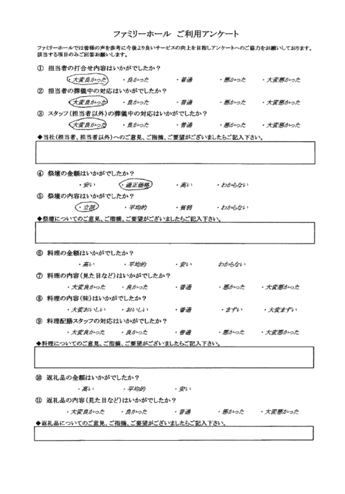 とても良心的で、父を見送る家族葬として親戚一同喜んでいます。