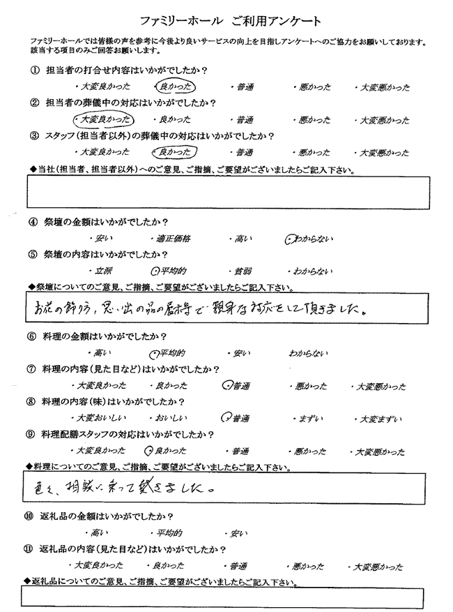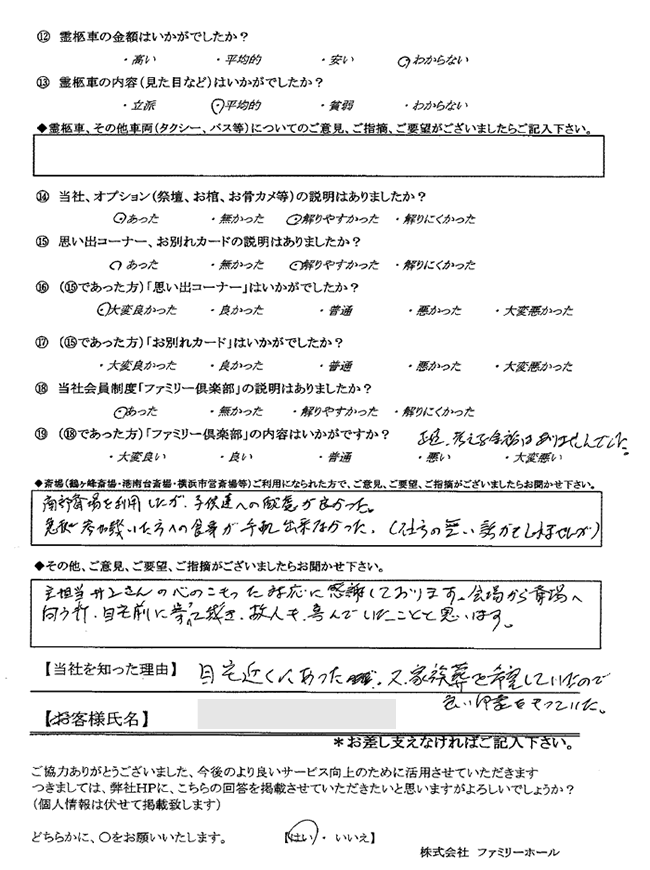 お客様よりの大切なお声を頂戴いたしました。スタッフ一同、全身全霊を尽くしてご奉仕いたします。