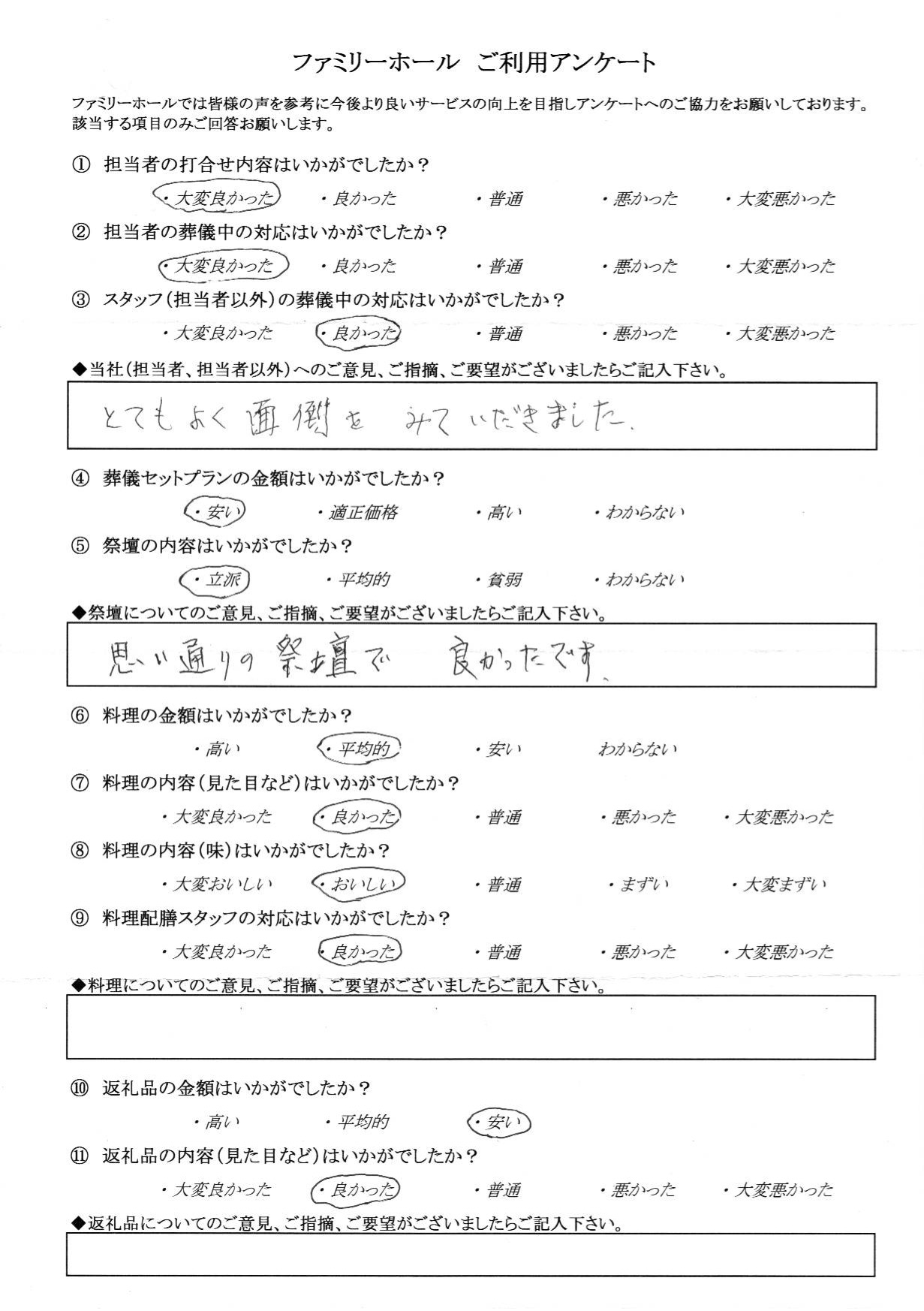 【お客様の声】全てにおいて心のこもった葬儀を執り行っていただきありがとうございました。