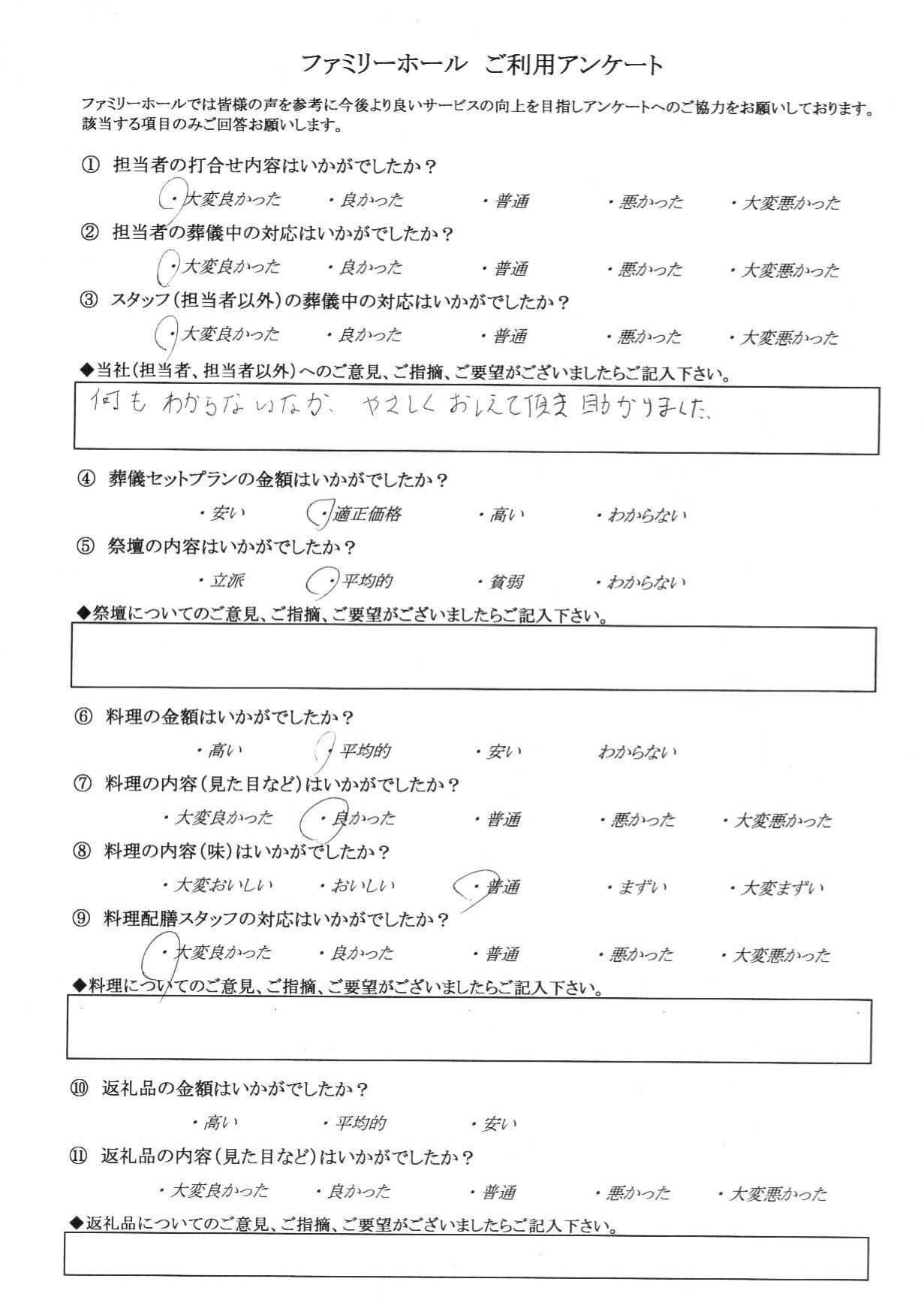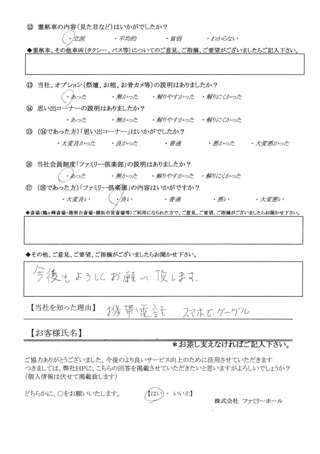 ファミリー倶楽部が大変良いサービスです。とても心のこもった対応をしていただき、良い葬儀となりました。…