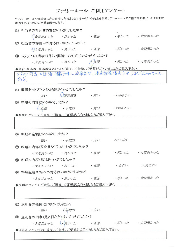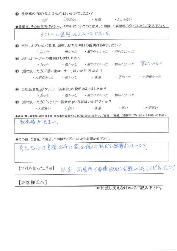 皆様感じ良くご対応いただき満足しております。亡母も喜んでいることと思います。