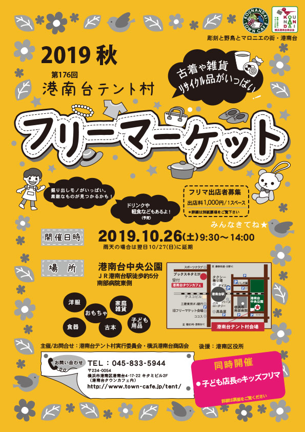2019年10月26日(土)に、港南台テント村フリーマーケットが開催されます。