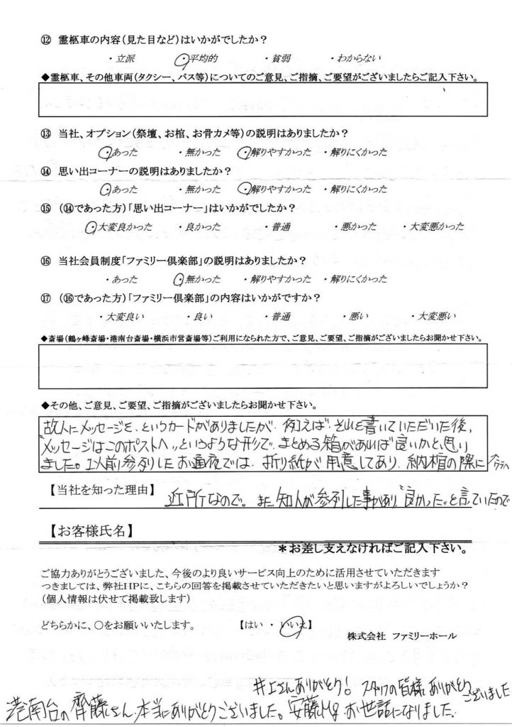 港南台斎場は港南台駅から近く、少人数での葬儀には最適な広さでした。