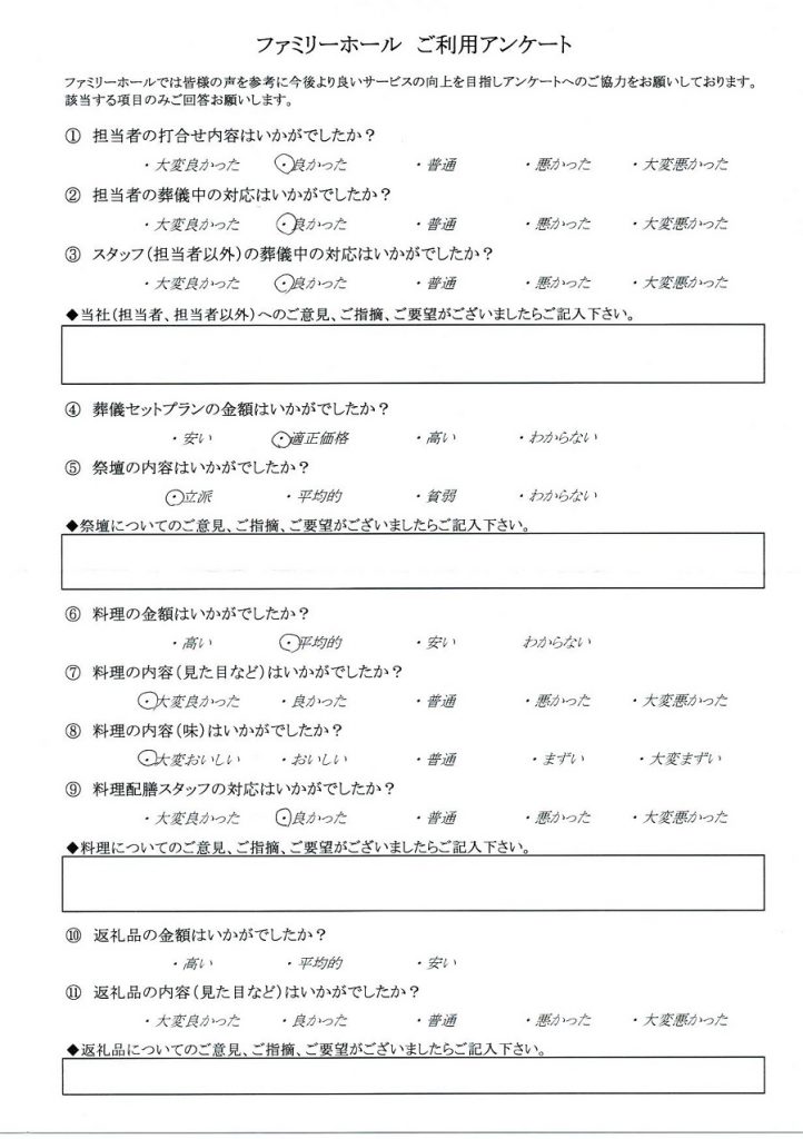 とても良心的で、父を見送る家族葬として親戚一同喜んでいます。