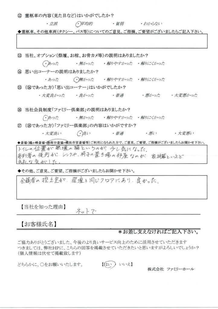 皆様感じ良くご対応いただき満足しております。亡母も喜んでいることと思います。