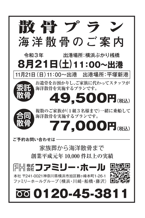 この度、毎日新聞にて散骨プランのご案内が掲載されました。