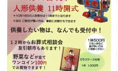 【第7回】人形供養祭《2019年10月16日(水)11時〜》
