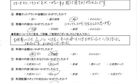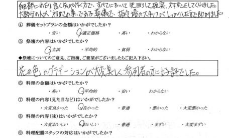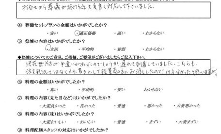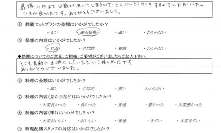 【お客様の声】全てにおいて心のこもった葬儀を執り行っていただきありがとうございました。