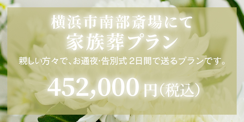 当斎場は港南台に通夜・葬儀が行える「家族葬専用斎場」がございますが、南部斎場を利用した場合の、1プランとして提案させていただきます。