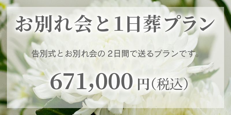 お通夜は行わずに、ご家族だけでゆっくりと告別式を行うお葬式です。